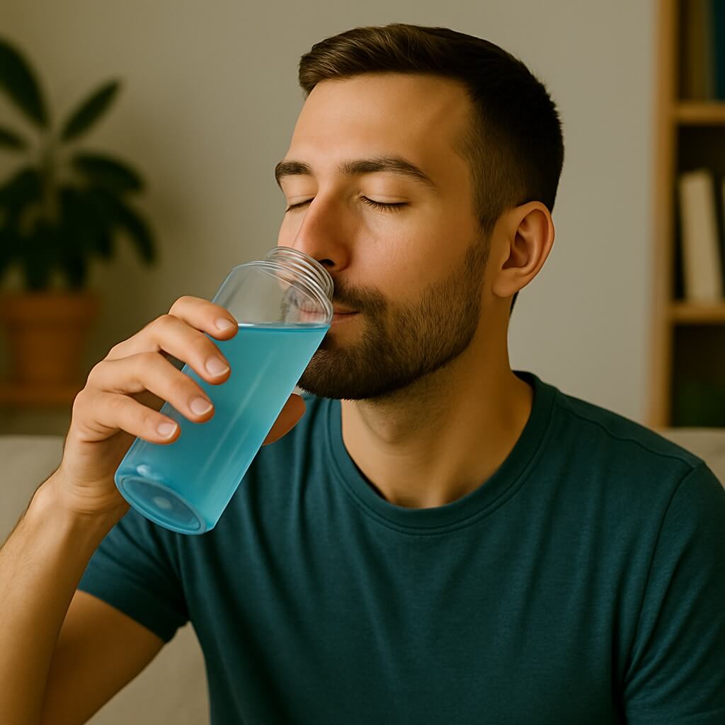Begin your journey by adding one scoop (10g) of Aveon® into your Aveon bottle filled with cold water. Shake until the vibrant blue elixir is fully dissolved — a visual cue that your activation formula is ready.