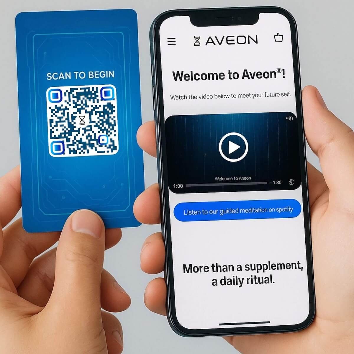 Inside every Aveon® package, you’ll find a holographic activation card. After taking your first 3 sips, scan it to unlock a 10-min meditation designed specifically to accompany the drink. This is where physical and mental synergy begins: as your body absorbs the nutrients, your mind enters a state of presence, gratitude, and clarity.